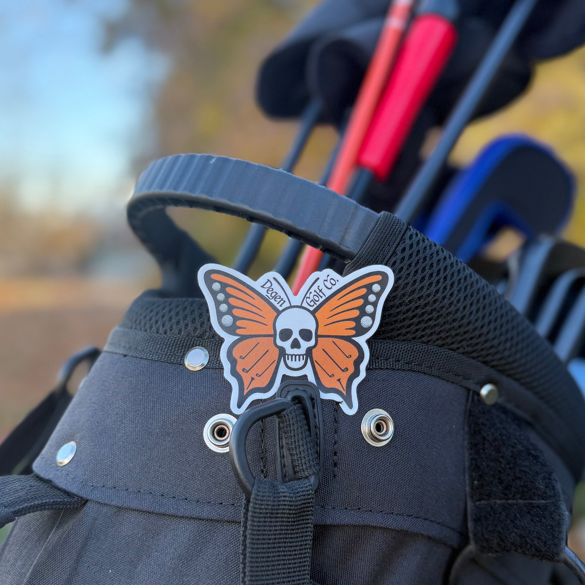 Our Butterfly Skull sticker is for the golfers who look calm on the outside but swing like a storm on the inside. A blend of bold color, clean lines, and classic Degen edge.